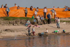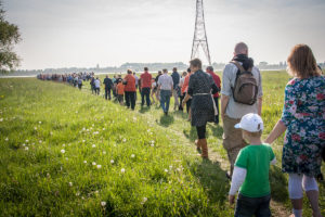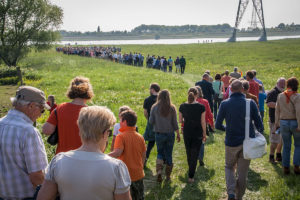 Op de dijken de langs de oevers van de Waal ter hoogte van de dorpen Hurwenen, Rossum, Heerewaarden, Varik, Heesselt, Opijnen, Neerijnen en Waardenburg hielden honderden inwoners een 7 kilometer lang Oranje Lint vast terwijl er een lied over Onze Waal weerklonk. Dit MOMENTUM, werd vanuit de lucht, het water en op het land vastgelegd.