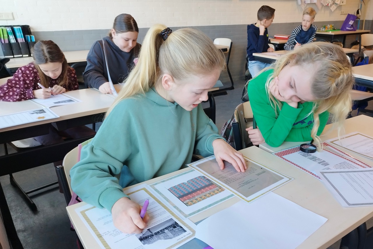 De eerste les ‘Bronnenonderzoek Tweede Wereldoorlog’ ging vanochtend van start op CBS De Bron – hoe toepasselijk – in Bruchem, gemeente Zaltbommel. De belangstelling voor het onderwerp is heel hoog. De nieuwsgierigheid en werklust niet minder. Volgende week komt gastdocent Vincent Wibier graag terug voor de tweede les in deze driedelige serie: Dilemma’s. Dat belooft wat.